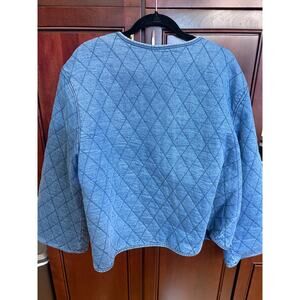 Kate Spade x Target blue quilted denim jacket with 3 pearl buttons. Cotton. Size 1X. New with tags.
