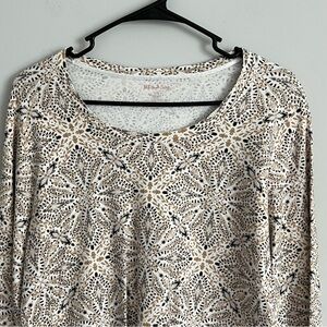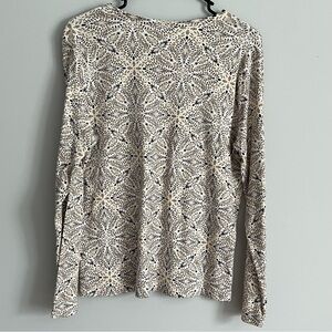 White Stag Medallion Print Scoop Neck Long Sleeve Cotton Tee Shirt