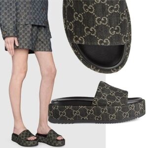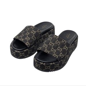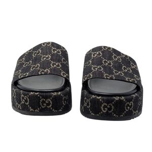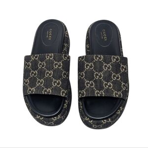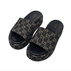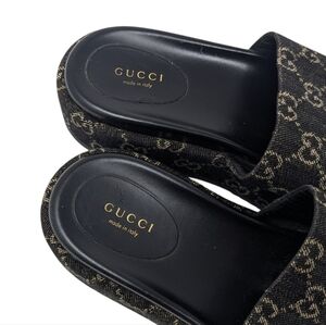 Gucci Jacquard Black Denim GG Monogram Angelina Platform Slide Sandal EU 38.5