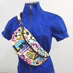 Brighton Graffiti Love Crossbody Belt Bag featuring a vibrant, multi-color graffiti-inspired design