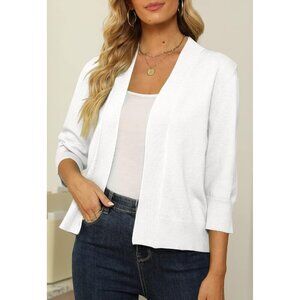 Women's Cropped Cardigan Sweater Lightweight 3/4 Sleeve Open Front Short