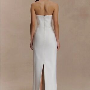 Elegant white strapless dress. Perfect for weddings. Simple and chic design. Scarf not included.