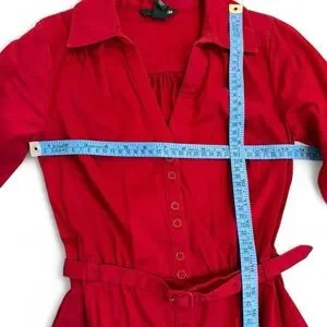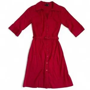 Vintage inspired red button up midi dress with belt