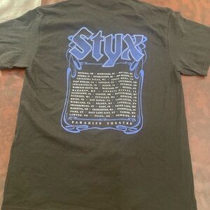 Bold black tee with vibrant Styx graphic. Comfortable and stylish for any fan.