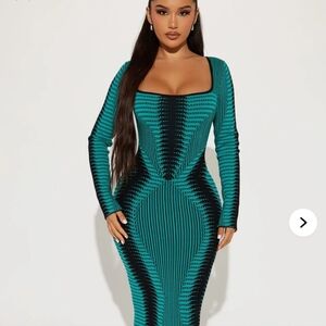 Turn heads with this stunning teal and black bodycon dress. Perfect for any occasion, this dress offers a flattering fit and stylish design. fashionnova brand . brand new. slim fit has a little stretch tagged 1x best fits xl/ 1x 12/14