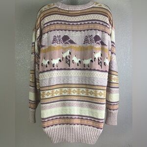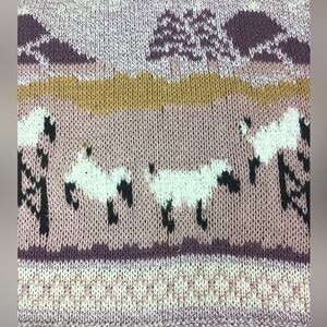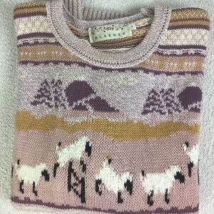 Blarney Vintage Cotton Knit Jumping Sheep Crewneck Sweater Size Large Pink/Gold