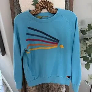 Aviator Nation Blue Sweatshirt with Rainbow Stripes