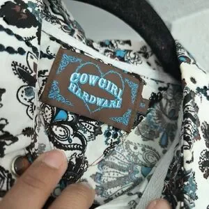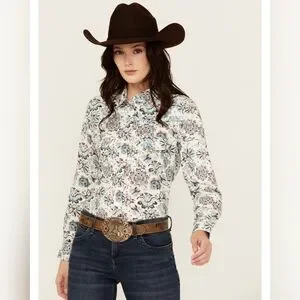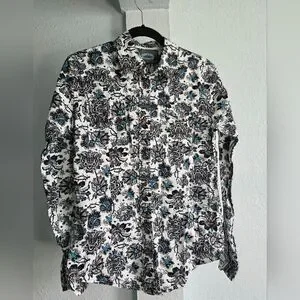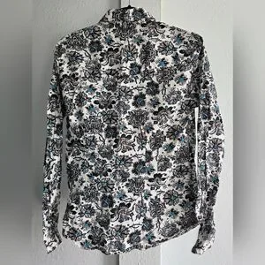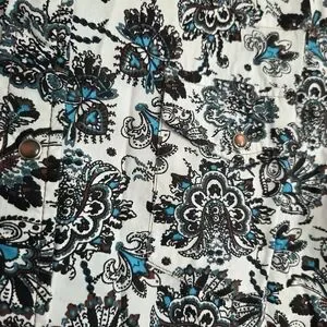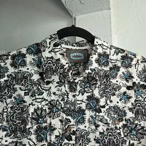 Add a touch of elegance with this floral print button down shirt. The blend of blue and black colors makes it versatile for any wardrobe.