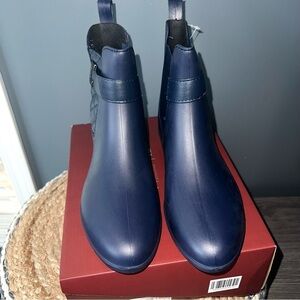 Waterproof Ankle High Rain Boots with Quilted Side Details. Low Heel, Pull On Style. New in Box🚭