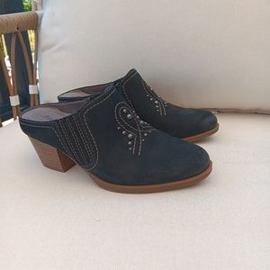 Black leather suede studded heeled mules/clogs Size 7 Wide