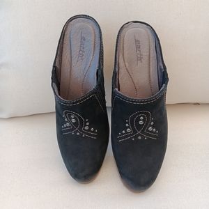 Earth Mendon black suede leather heeled slip on mules