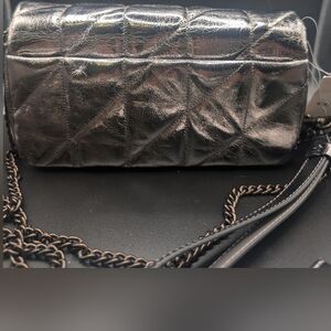 Elegant black quilted leather bag with chain strap. Perfect for any occasion.