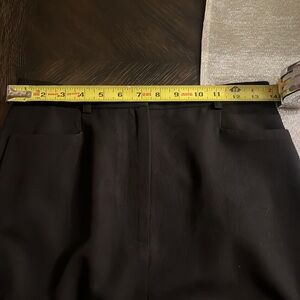 ANN TAYLOR black straight skirt with belt loops, front zip, front slit pockets and back slit. Fits more like a small 4 please see measurements in pics.