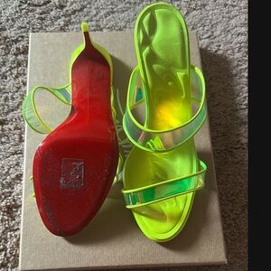 Step out in style with these stunning holographic yellow stiletto heels. Perfect for adding a pop of color to any outfit