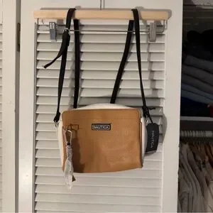 Nautica colorblock crossbody bag in white, tan, and black. PU leather with canvas details. NWT. Clean, structured, and easy to style. Carefully stored with no flaws that I can see.