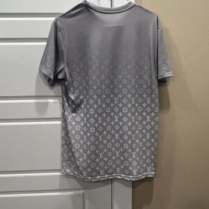 Stylish gray tee with iconic Louis Vuitton monogram. Perfect for casual wear.