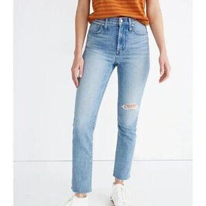 Madewell Perfect Vintage Crop Jeans Rosabelle AJ190 Light Wash Knee Hole