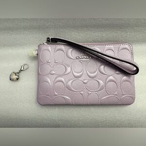 Coach Pastel Lavender Signature Debossed Leather Large Zip Wristlet Wallet NWT