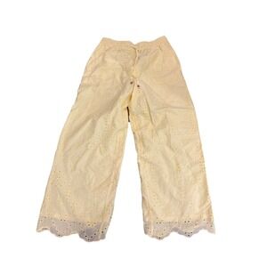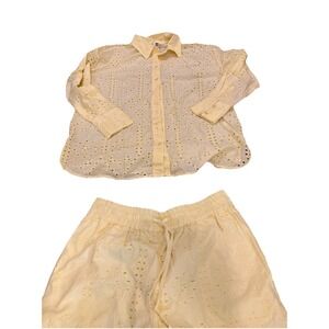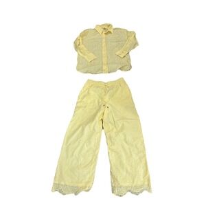 Calypso St Barth Yellow Medium Blouse & wide leg pant Set Eyelet Resort Spring