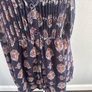 maeve blouse, anthropologie top, floral blouse, navy floral top, sleeveless blouse, button front top, boho blouse, casual top, lightweight blouse, summer top, everyday blouse, v neck top, pintuck blouse