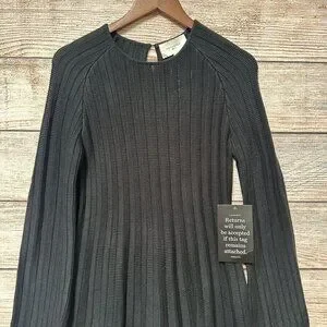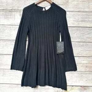 Pomander Place Tuckernuck Women’s Black Ribbed Knit Sweater Adi Dress Size S Long Sleeve