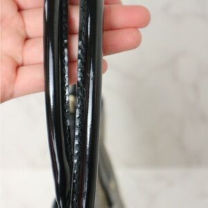 EXTERIOR: Black/ Material: Patent Leather& Coated Canvas