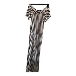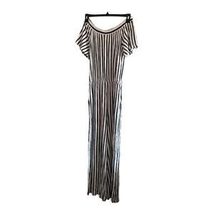 Love Tree Womens Jumpsuit Navy Stripe Textured Off Shoulder Short Sleeve 2X