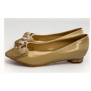 Midnight Velvet Champagne Pointed Toe Flower Heel Flat Slip On Shoes Women's 7W