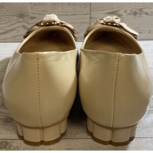 The Midnight Velvet Champagne Pointed Toe Flower Heel Flat Slip On Shoes in women's size 7W are elegant and versatile shoes perfect for a variety of occasions. With a solid ivory color, pointed toe shape, and floral accents, these heels are suitable for weddings, parties, christenings, formal events, and even business meetings. Made of leather with a faux leather lining and foam insole, these shoes offer comfort and style. The rubber outsole provides durability, making them ideal for all seasons. Add a touch of sophistication to your outfit with these beautiful and chic heels from Midnight Velvet.
