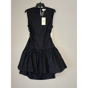 Joie BEA Women's Crew Neck Cotton Cut Out Pleated Mini Dress Caviar Size Large