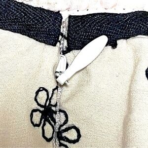 - This elegant skirt features intricate black embroidery on a cream background, perfect for any occasion. Its stylish design adds a touch of sophistication to your wardrobe.