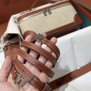 This chic Loro Piana LP19 handbag combines beige canvas with rich brown leather accents for a sophisticated look. The structured design features a secure zip closure and a detachable shoulder strap, offering versatile styling options. Crafted with high-quality materials, this compact bag is perfect for carrying daily essentials in style. Elevate your accessory collection with this elegant and practical piece from Loro Piana.