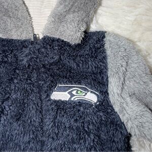 NFL Kids Navy and Gray Fleece Seahawks Footie Hooded Onesie 6-9 Months