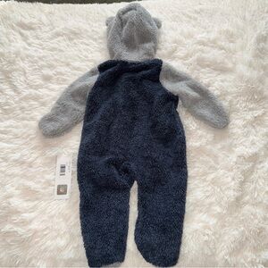 Soft NFL footie with cozy hood. Navy body and gray sleeves. Ideal for little fans.