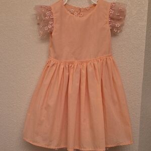 Gorgeous Design in Spain Princess Like Кids peach/ gold dress with hidden zipper, fully lined-up , puffy short sleeves and floral details. Perfect for formal occasions.