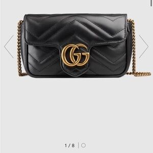 Chic Gucci mini bag with quilted texture. Features a silver chain strap and iconic GG emblem