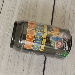 Description and Features: Mattel Games Rock'em Sock'em Dice Game In A Can. Dice Game Inspired by the classic battling robots game.