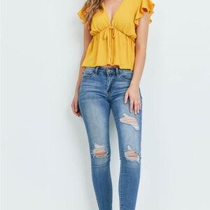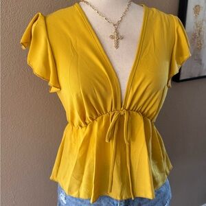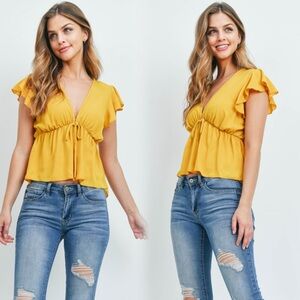 Brighten your wardrobe with this stylish yellow ruffle sleeve top. Perfect for any occasion, it offers a flattering fit and vibrant color.