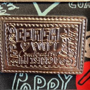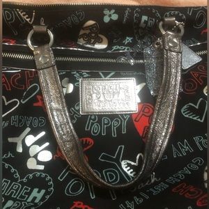 Stylish and vibrant, this Coach bag features a playful multicolor design on a black background. Perfect for adding a pop of color to any outfit.