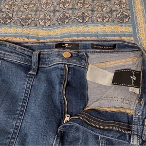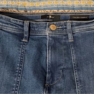Women’s 7 For All Mankind Italian fabric denim taper leg jogger/jeans, size 25. Zippers on both ankles with no damage, and 2 slick light blue 7 tags on back waist/pocket. Used, but with care and miles left. No stains, rips, tears, missing buttons, loose threads, etc.