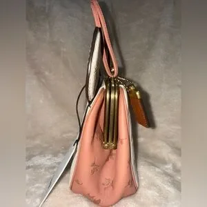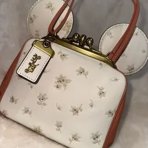 Limited Disney x Coach Minnie Mouse Kisslock Bag Cream & Pink Floral Print New!