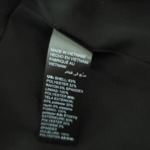 The White House Black Market Petite Women's Size 8 Black Solid Ruffle Jacket is a stylish and versatile outerwear piece perfect for casual, workwear, or business occasions. Made of polyester with a rayon fabric type, this mid-length jacket features a button closure, ruffle accents, and shoulder pads for a classic fit. With a padded, lightweight design suitable for all seasons, this designer jacket from White House Black Market offers a timeless and sophisticated look for the modern woman. Perfect for hand wash care, this jacket is a must-have addition to any wardrobe.