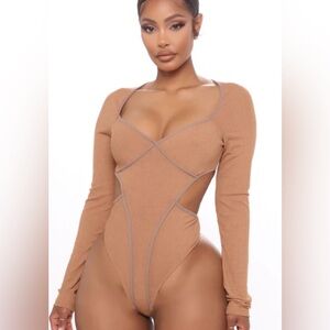 Fashion Nova Tan Long Sleeve Bodysuit