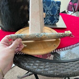 Stylish leopard print clutch wallet with a unique blend of colors. Perfect for adding a touch of elegance to any outfit.