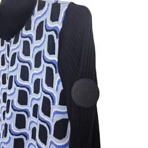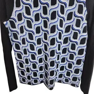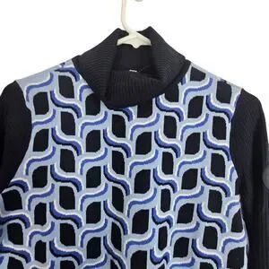 Talbots Womens Abstract Geometric Turtleneck Sweater Size PS Preppy Artsy Blue