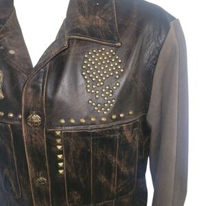 WILSON'S Vintage Distressed Leather Biker Jacket Studded Cross Punk Patch M