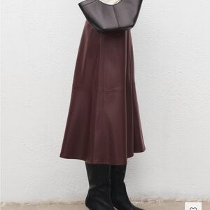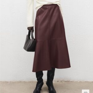 Mango Burgundy Faux-Leather Midi-Skirt