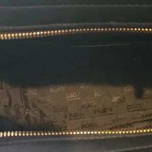 This Michael Kors satchel in black leather exudes timeless elegance with its structured design and gold-tone accents. The smooth leather finish and top handle make it a sophisticated choice for professional settings.