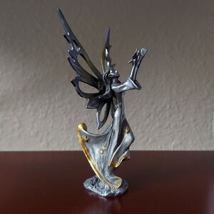 Gold & Purple Pewter Fairy with Butterfly Figurine