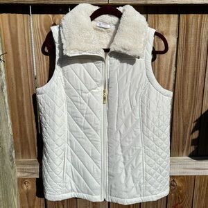 Never worn. Elegant quilted vest with cozy plush collar. Perfect for layering. Soft and stylish.